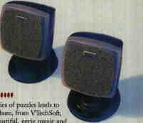Sure, the iMac is a cute, all-in-one computer, but its built-in speakers are terribly tinny. If you're looking for a gift that enhances both the look and the sound of an iMac, give a listen to Altec-Lansing's ACS65i speakers. This Bondi-blue-and-ice, three-way speaker system features two satellite speakers and a subwoofer with a frequency response of 30Hz to 20kHz, a bass volume control on the subwoofer, and a master volume control on the right satellite speaker. Although they lack the fidelity of a good home stereo, these speakers are serviceable for noncritical listening and robust enough to make gamers happy.--CHRISTOPHER BREEN