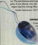 Contour Design's UniMouse is the ideal gift for anyone who's ready to ditch the abysmal round mouse that comes with iMacs and G3s. Contoured to nestle comfortably in the average user's palm, the UniMouse has rubberized sides that make it easy to grip the mouse. Using special control-panel software available from the company's Web site, you can adjust the UniMouse's sensitivity in 15 discrete steps. The control panel also lets you program the three buttons to perform functions such as clicking, dragging, and scrolling. Whichever option you choose, the UniMouse is a joy to use.--FRANKLIN TESSLER