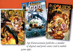 In-game marketing synergies are also possible. "Pocket God led the way and showed us the power of the app in terms of the game's ability to drive fans to other things they might like," Hedgecock says. The Pocket God game contained a Gorilla Island area featuring the Ape logo, allowing the company to provide information about the comic book; Squids integrated an Ape-produced, exclusive in-app digital comic.
