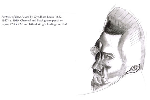 Portrait of Ezra Pound by Wyndham Lewis (1882-1957), c. 1919. Charcoal and black grease pencil on paper, 27.9 x 22.8 cm. Gift of Wright Ludington, 1941